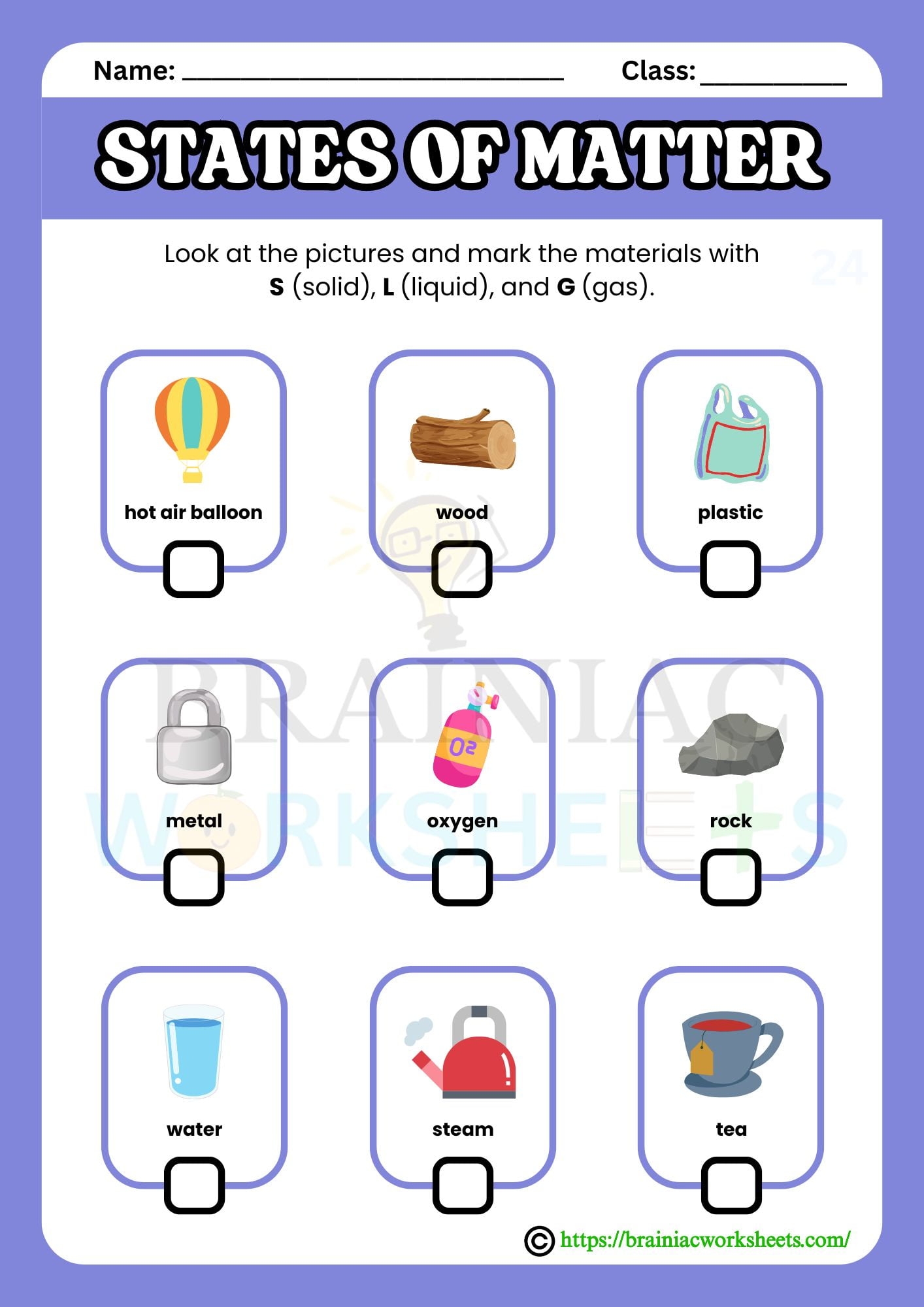 States Of Matter Science Worksheet For Class 3 Brainiac Worksheets