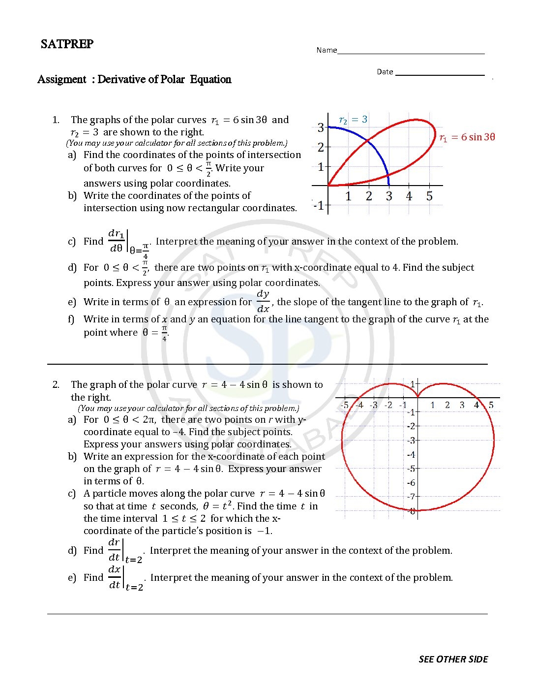 AP Calculus AB BC Test 3 Differentiation SAT PREP Worksheets Library