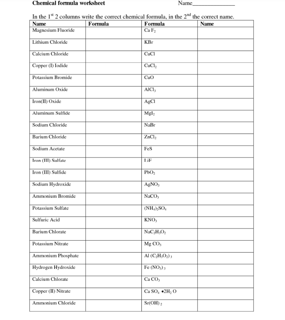 Unlock the Answers with Our Chemical Names and Formulas Crossword Worksheet Answer Key