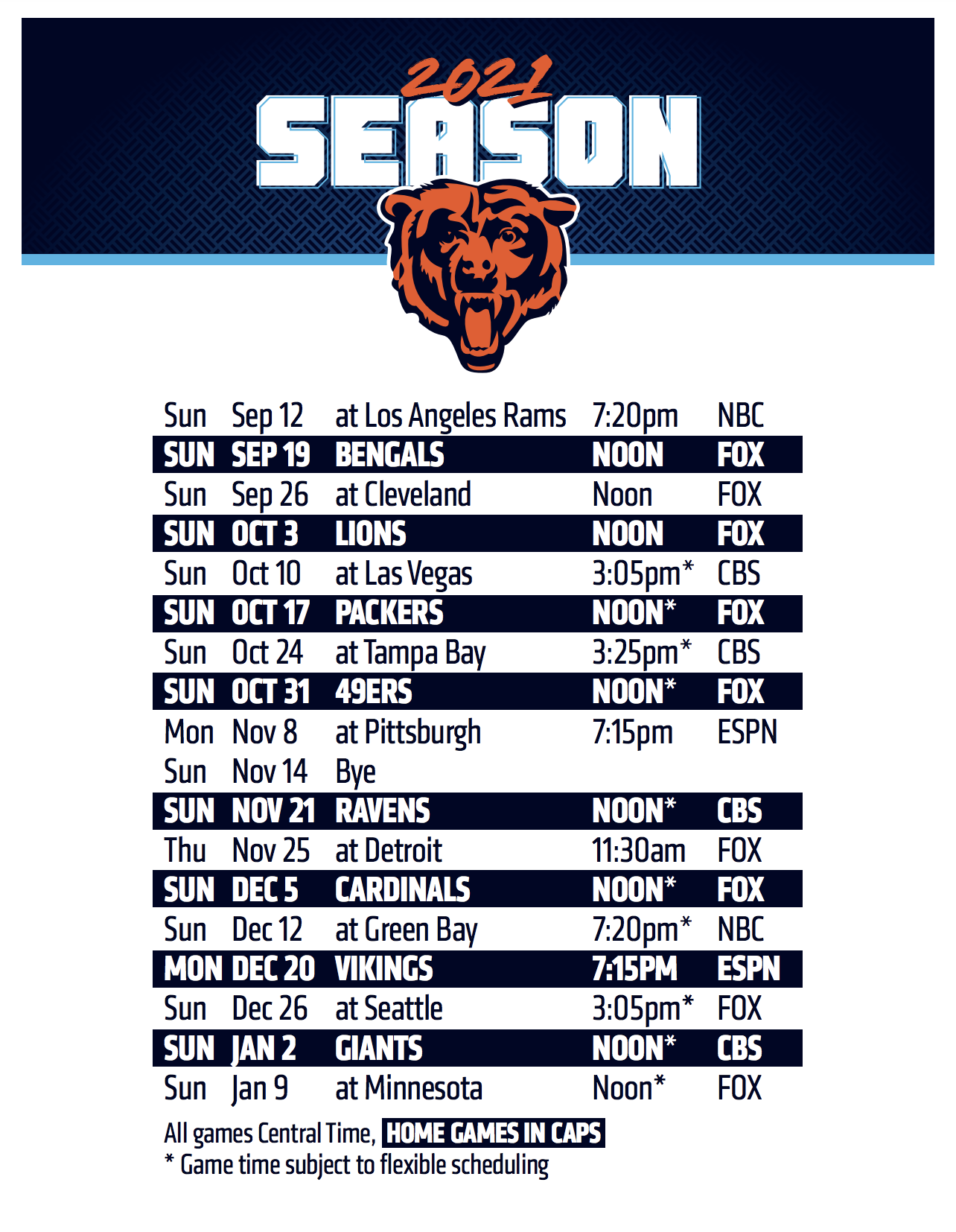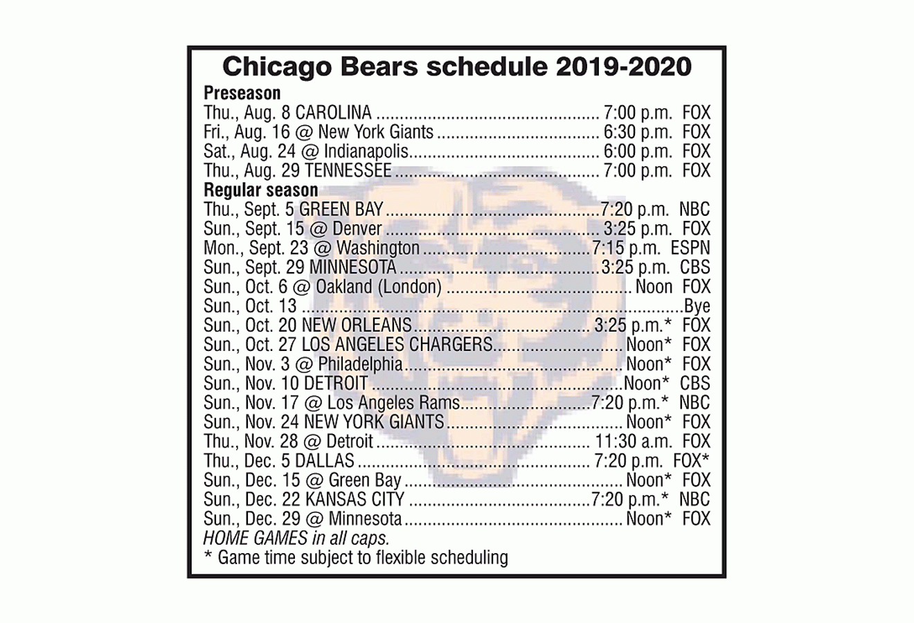chicago bears schedule printable