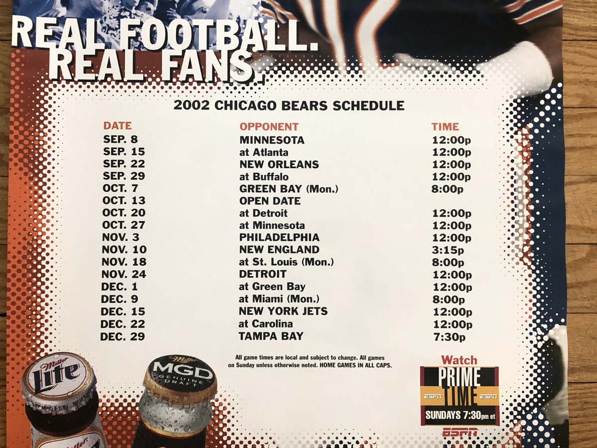 Chicago Bears Schedule Poster Miller Lite Beer ESPN 26×18 NFL Football Gift EBay