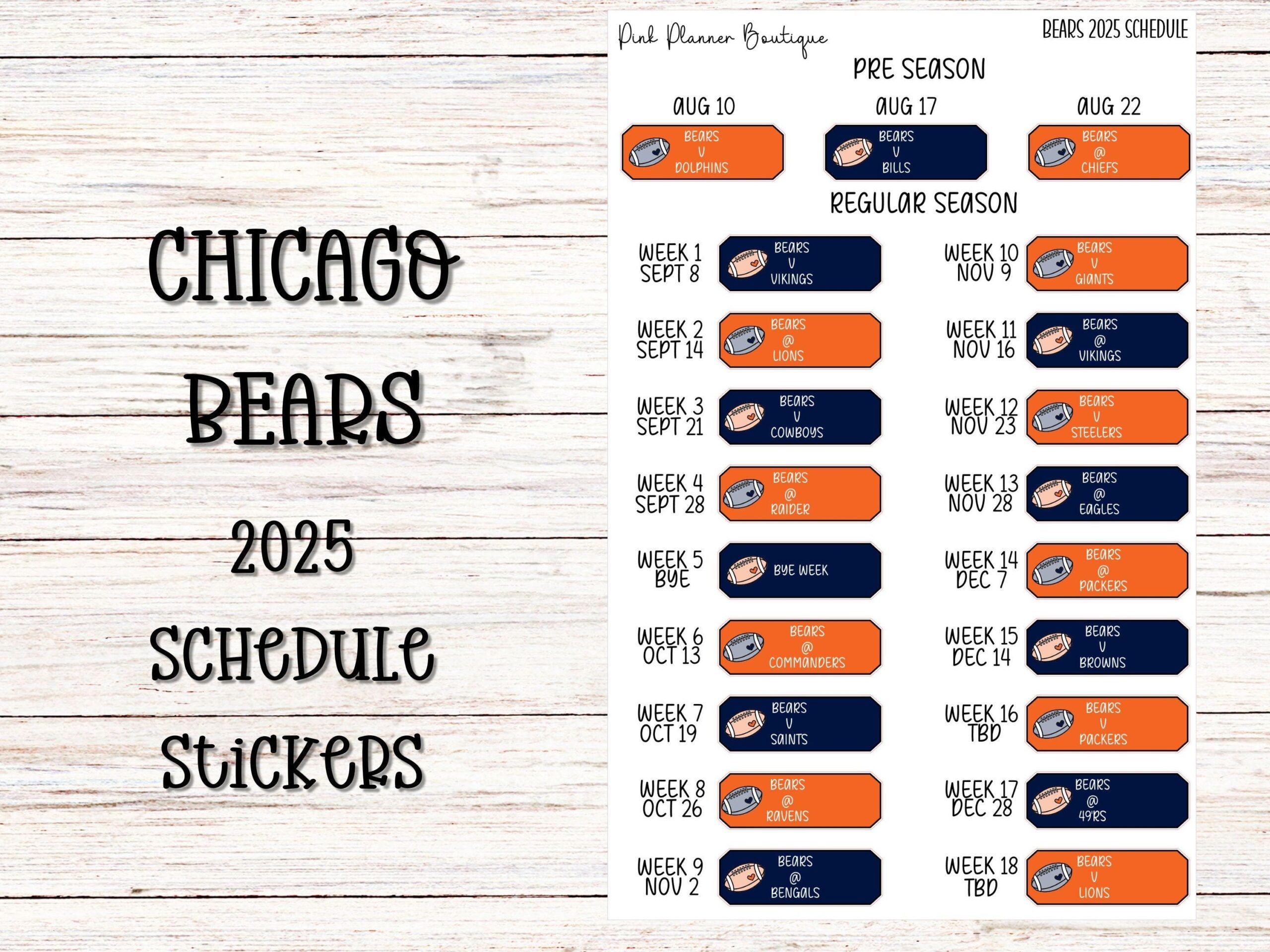 CHICAGO BEARS 2025 NFL Football Schedule Glossy Decal 8 X 10 EBay