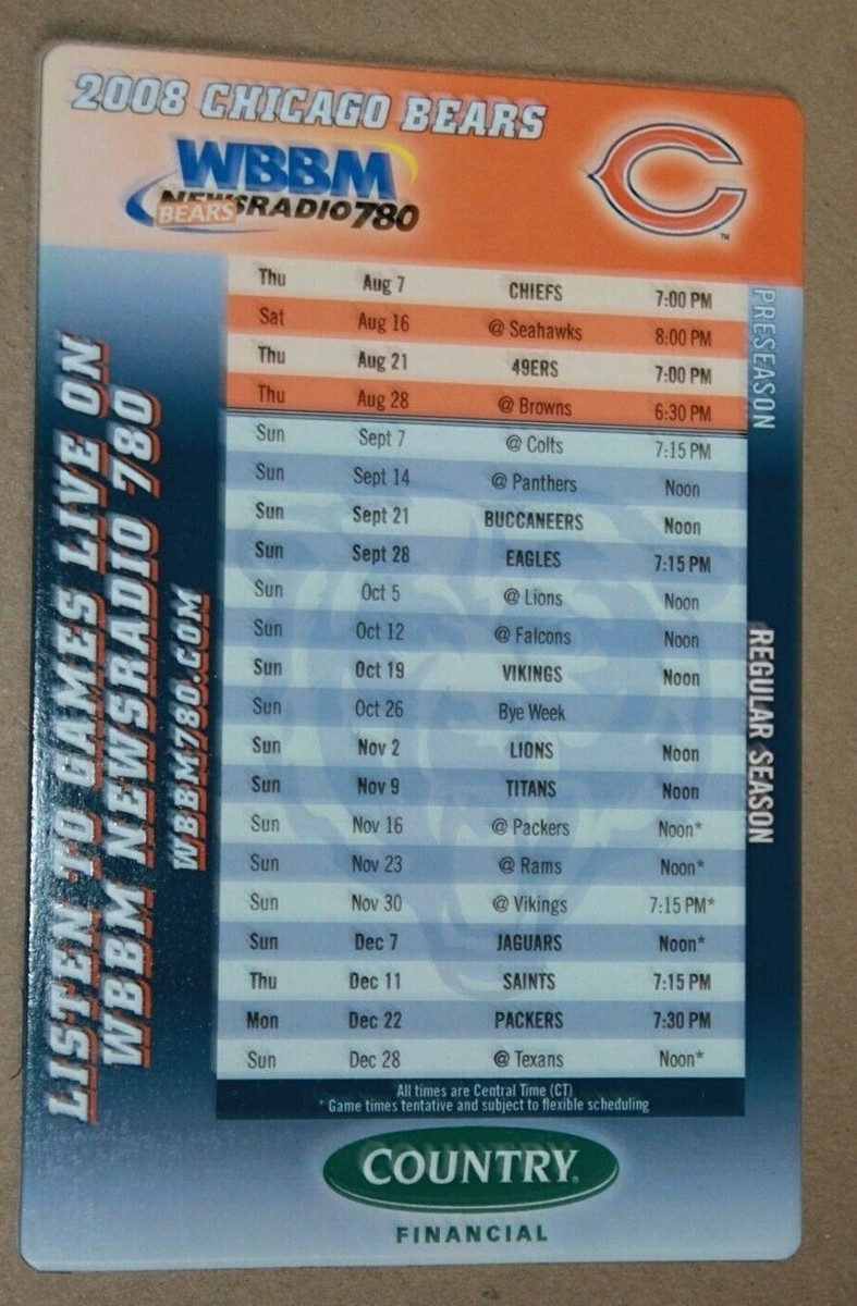 NFL Football Magnet Schedule 2008 Chicago Bears EBay