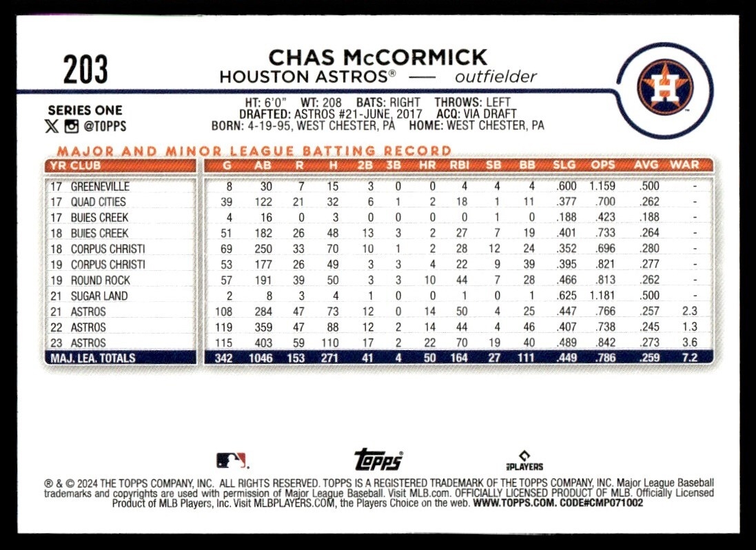 2024 Topps Series 1 Yellow Border Chas McCormick Houston Astros 203 EBay