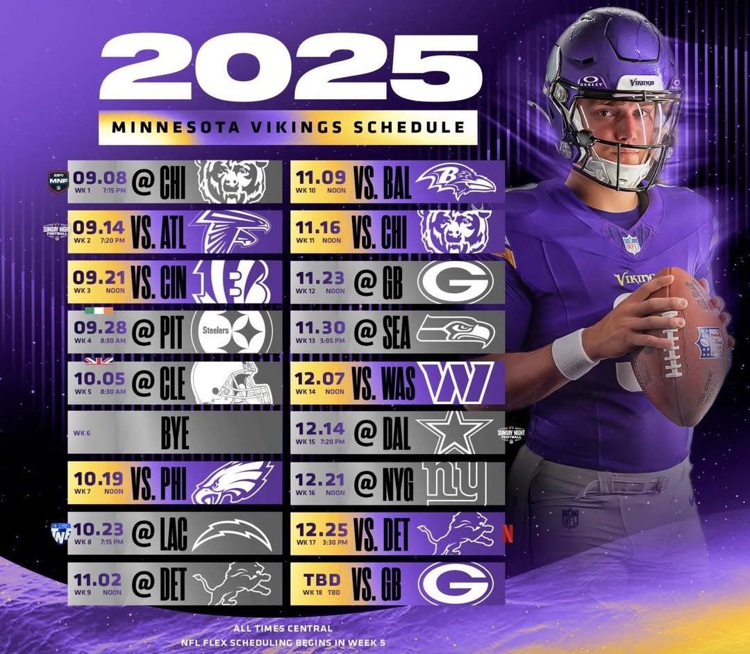 VikingNations On X Your Minnesota Vikings 2025 Season Schedule SKOL Graphic Via Vikings Https t co mjARTonb7U X