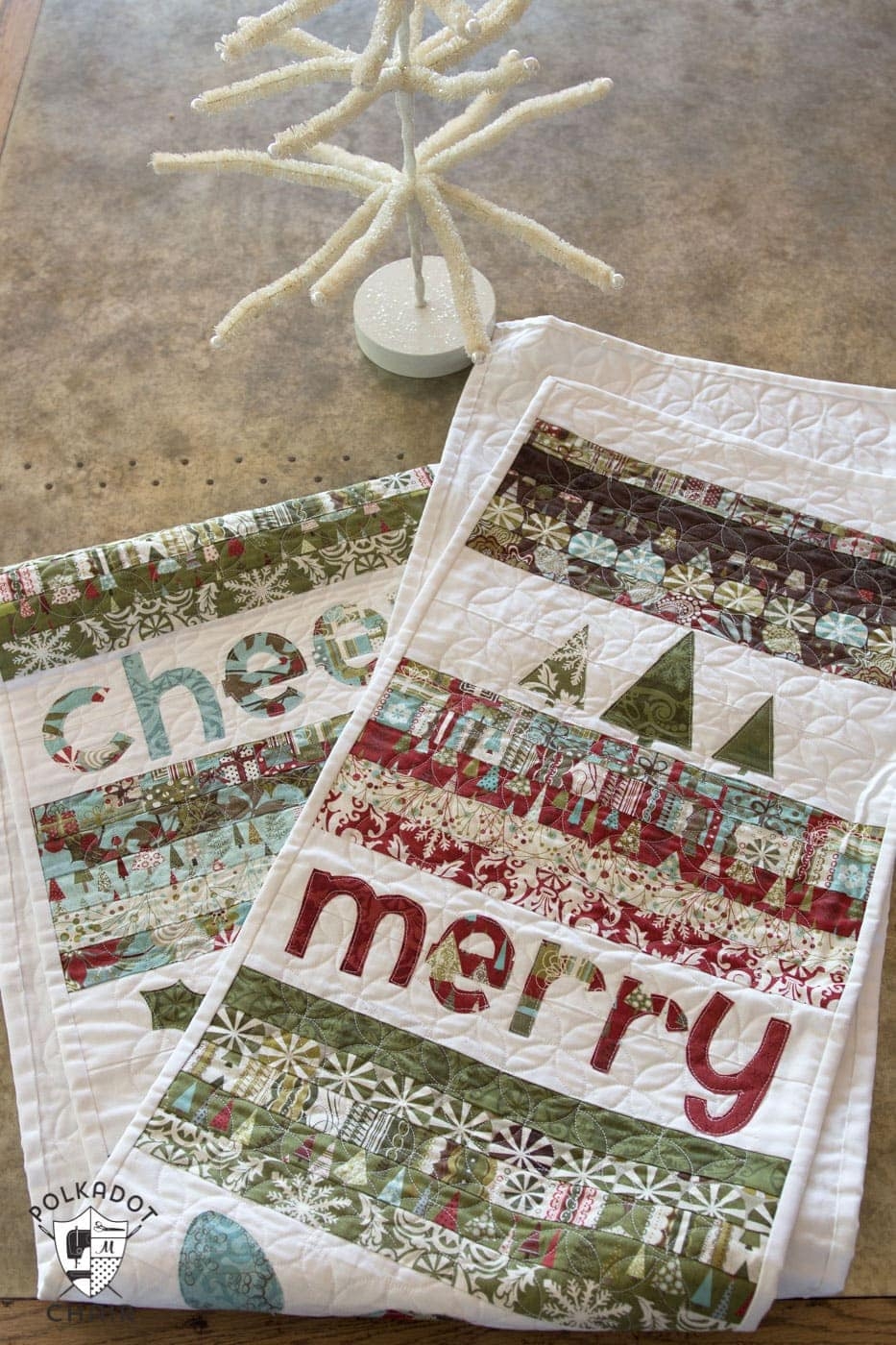 Striped Quilted Christmas Table Runner Pattern Polka Dot Chair