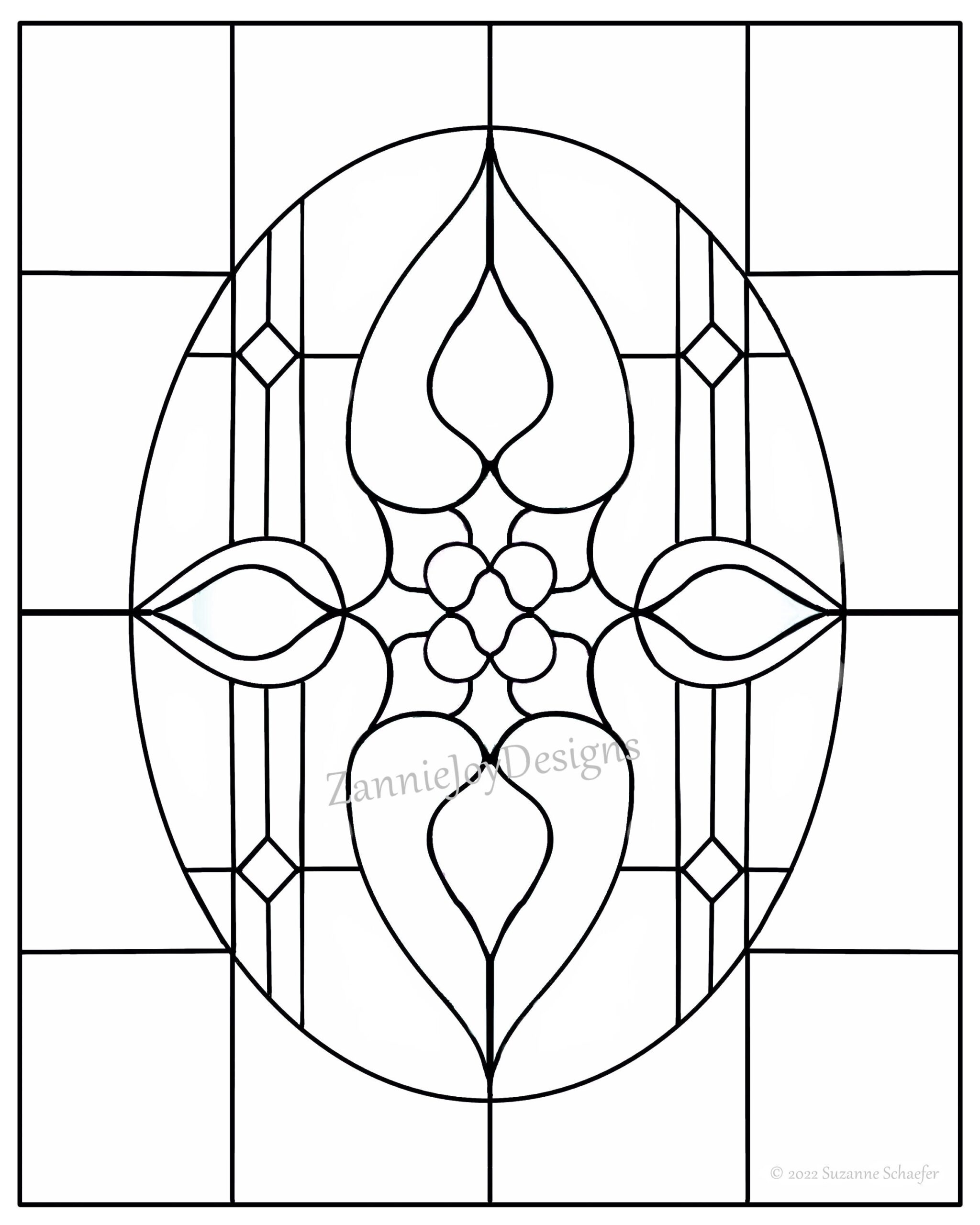 Stained Glass Pattern Instant Download Printable PDF Coloring Page Digital File Etsy